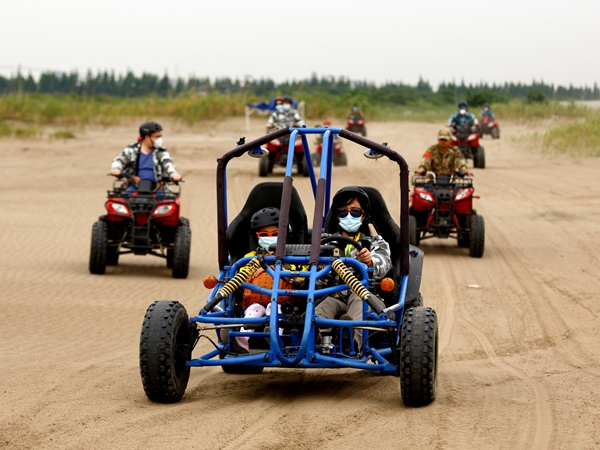 短暫的午飯及午休過后,所有家庭驅車前往下午的活動場地——ATV全地形車越野活動場地,開始緊張刺激的越野挑戰。伴隨著發動機嗡嗡的聲音,所有“賽車手們”以家庭為分組,一輛接連一輛的駛出出發點,馳騁前進。